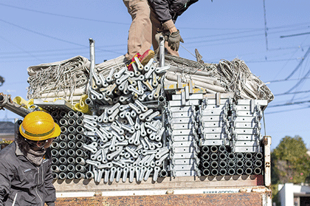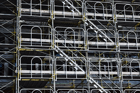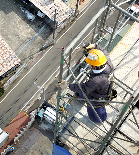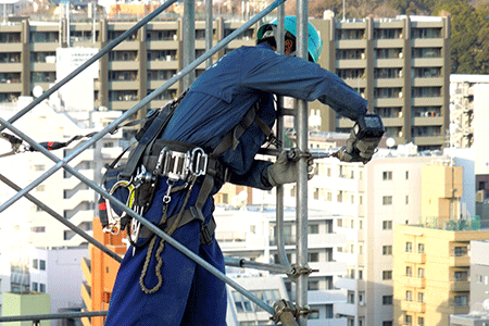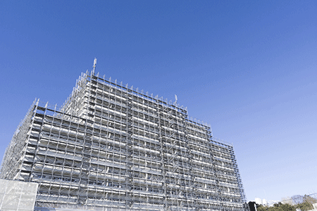 ビルや橋梁、倉庫や発電所など、様々な構造物の建設に必要となる、足場・安全設備を設置します。外壁の塗装や補修のための工事にも必要となります。当然足場の解体も含まれます。